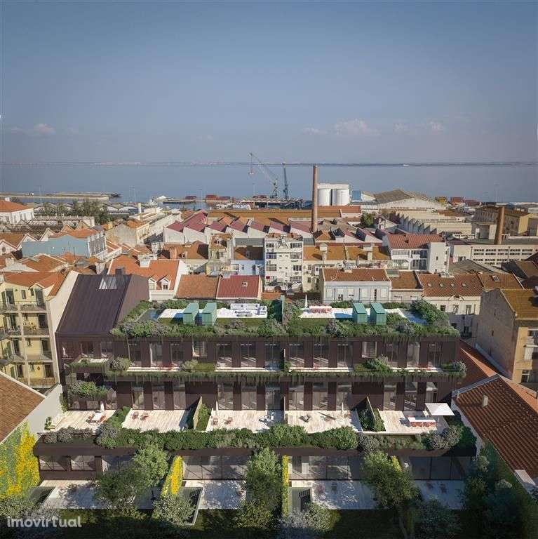 T4 Duplex com 213 m2, a estrear, com 2 lugares de estacionamento, piscina privada exterior e jardim com 178 m2, inserido num novo condomínio verdadeiramente único, no conceito e projeto. O Jungle Lofts é uma inovadora oferta residencial, localizada numa zona histórica da capital, junto ao Tejo, entre o Convento do Beato e a Doca de Marvila. O empreendimento funde o clássico e o contemporâneo, a natureza e a cidade, de forma exemplarmente subtil.