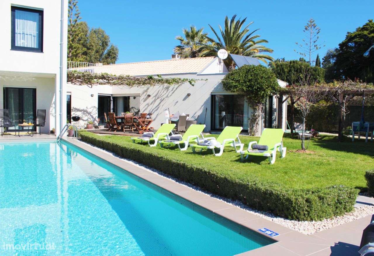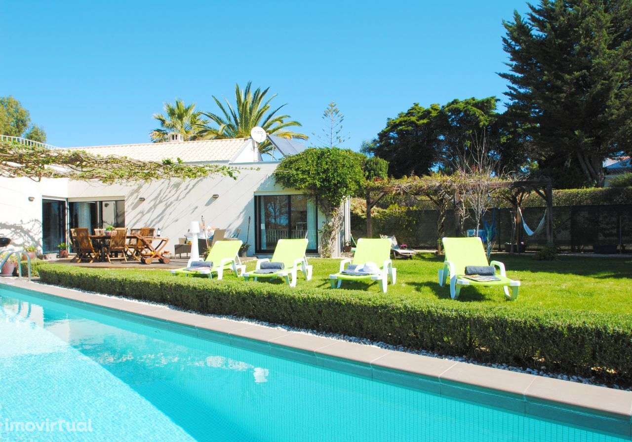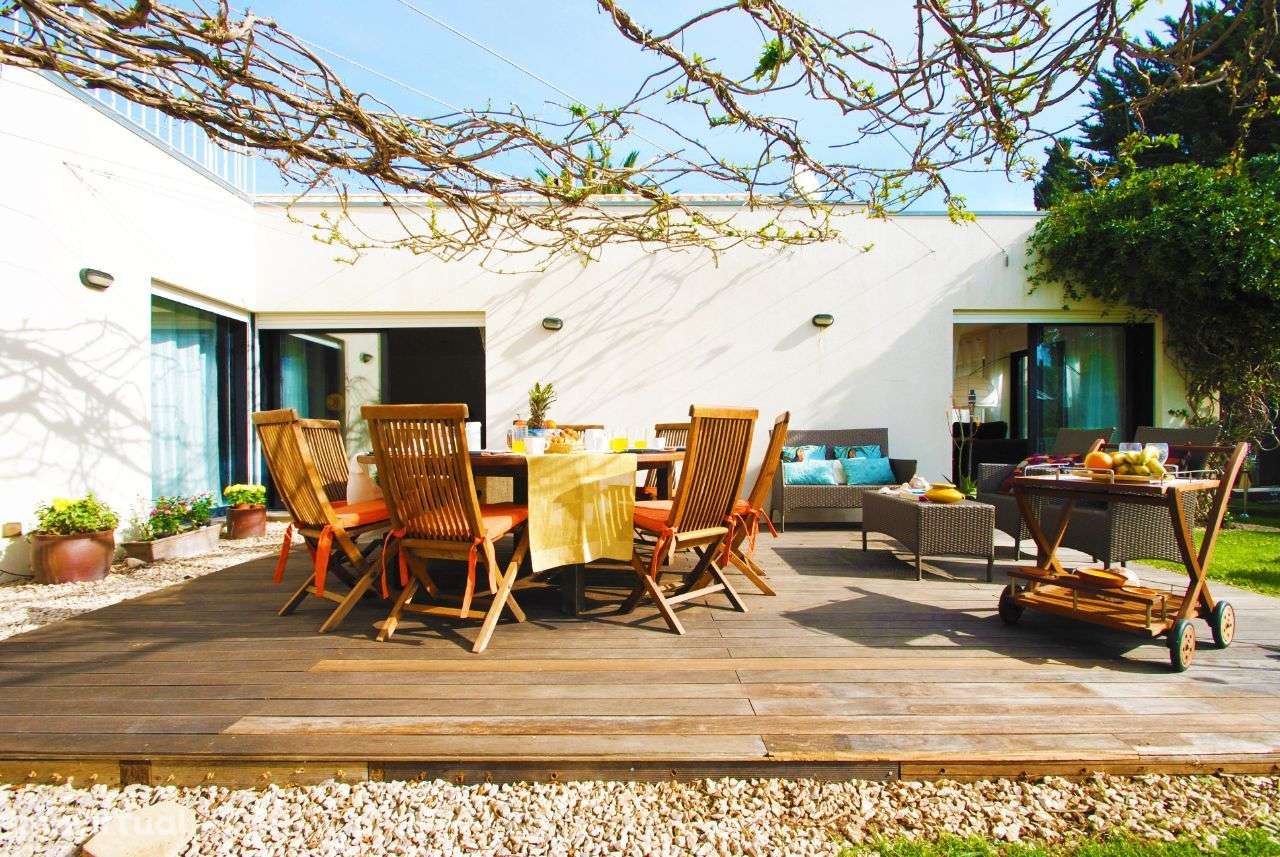 O piso térreo desta maravilhosa casa moderna possui uma cozinha totalmente equipada de um lado e uma área de estar /jantar em plano aberto com muitos assentos confortáveis, TV com DVD e cabo português (com alguns canais internacionais) e uma incrível área para refeições com uma grande mesa e cadeiras. As portas duplas do pátio abrem-se para a piscina privativa (aquecível como um extra opcional), bem como o encantador jardim e pátio que incorporam uma área de estar e jantar ao ar livre.