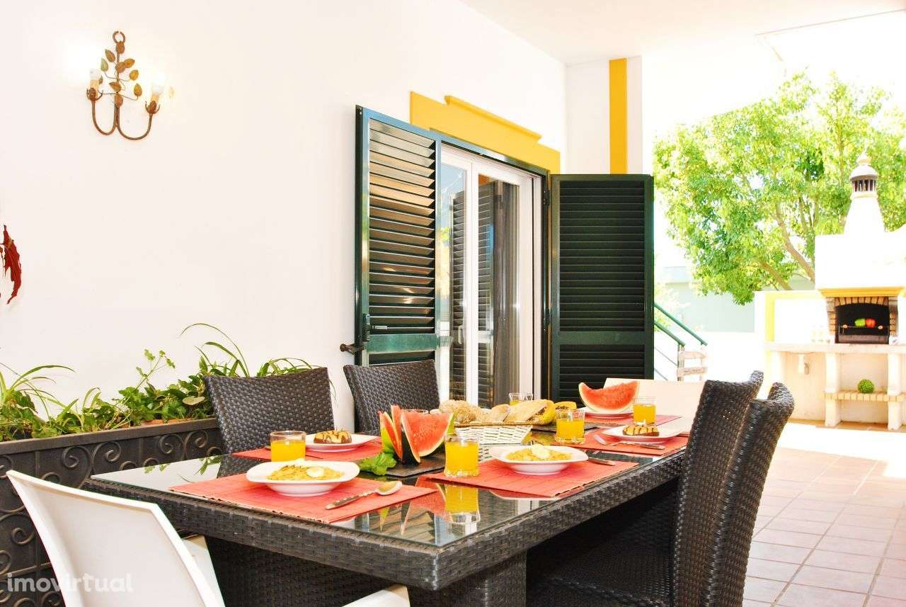 A propriedade está completamente murada com um portão de pedestres que leva à entrada. A piscina privada (aquecida como extra opcional) é cercada e virada a sul, localizada na frente da propriedade. A sala de jantar ao ar livre e o churrasco tradicional do Algarve permitem desfrutar de refeições de verão ao ar livre.