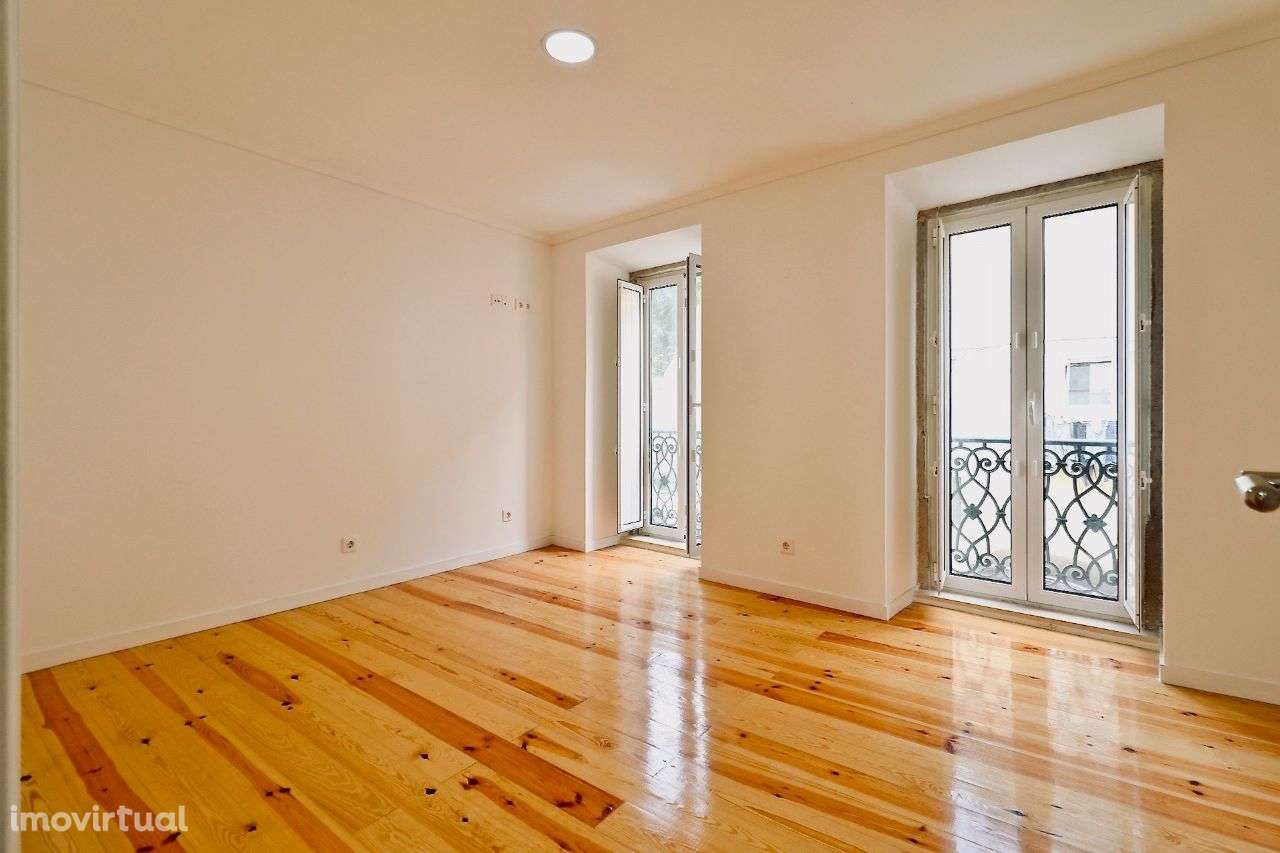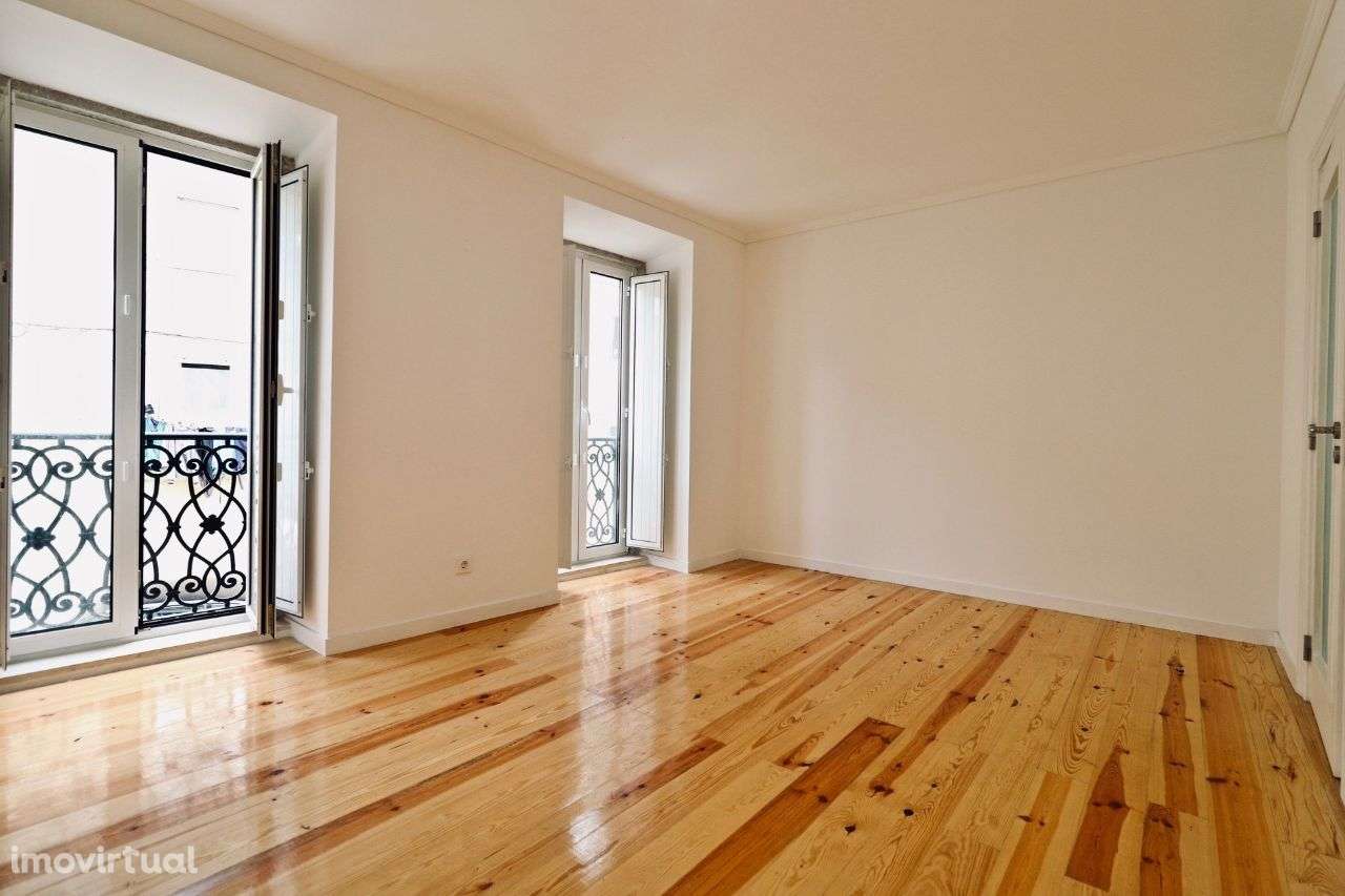 Apartamento T1 remodelado com 60m2 + Terraço com 35m2, 1º andar, prédio de traça antiga totalmente remodelado localizado em Campolide a 800m ou 10 minutos a pé do Centro Comercial Amoreiras e Liceu Francês.