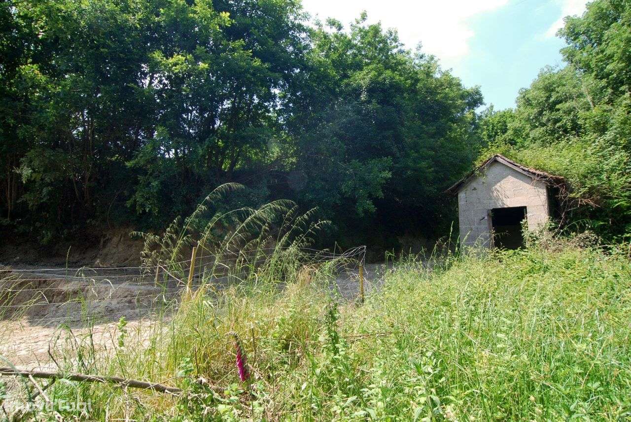 Tem edificações antigas em pedra e anexo para recuperar com 122 m2 de área de construção.
