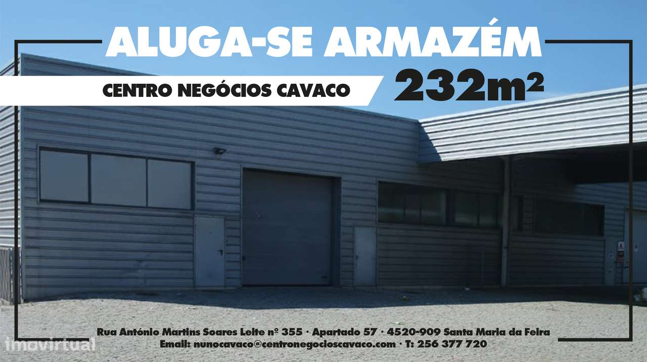 Armazém para arrendarAveiroSanta Maria da FeiraSão João de VerARMAZÉM CENTRO NEGÓCIOS CAVACO 232 M2