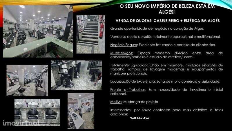 OLXImóvel comercial para comprarImóveis usadosLisboaOeirasAlgés, Linda-a-Velha e Cruz Quebrada-DafundoAlgésCede se quota de cabeleireiro em Algés