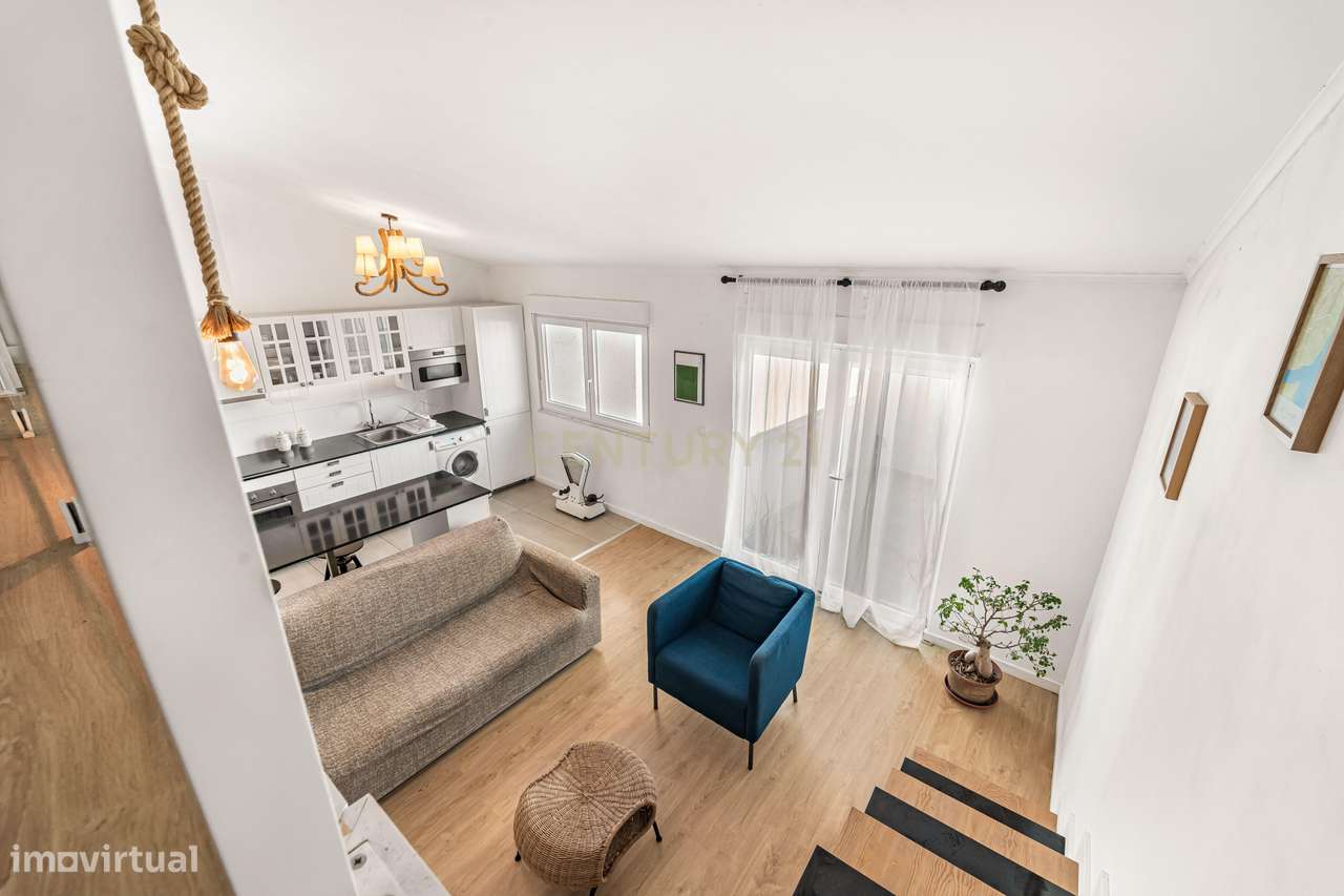 CENTURY21 Realty Art M&JApartamento para comprarImóveis usadosT1SetúbalMontijoMontijo e AfonsoeiroLoft urbano totalmente remodelado com mezzanino e terraço privativo —