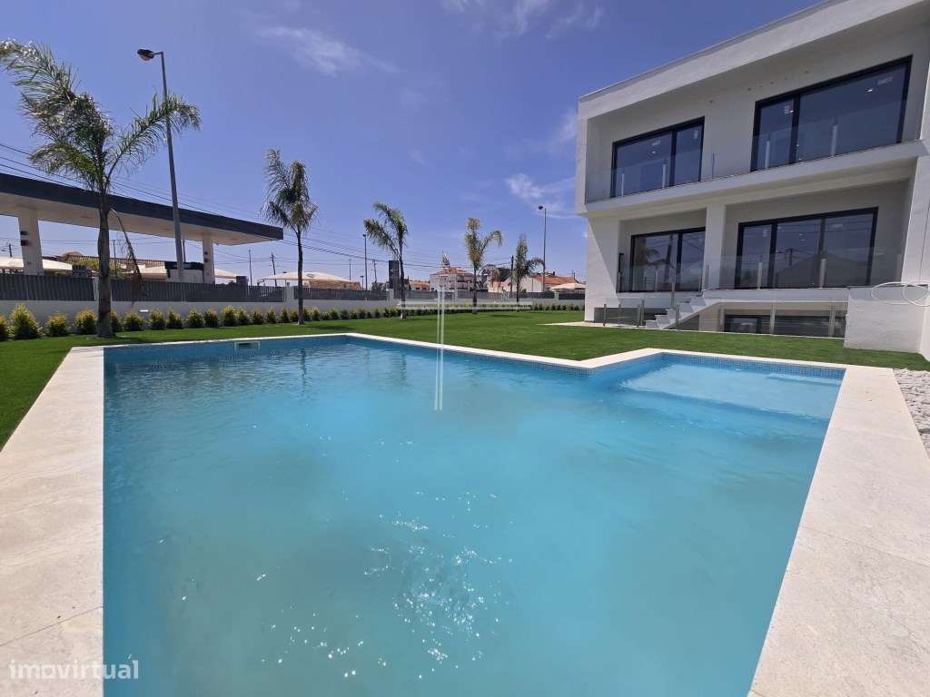Moradia geminada T3, arquitetura contemporânea com garagem e piscin...