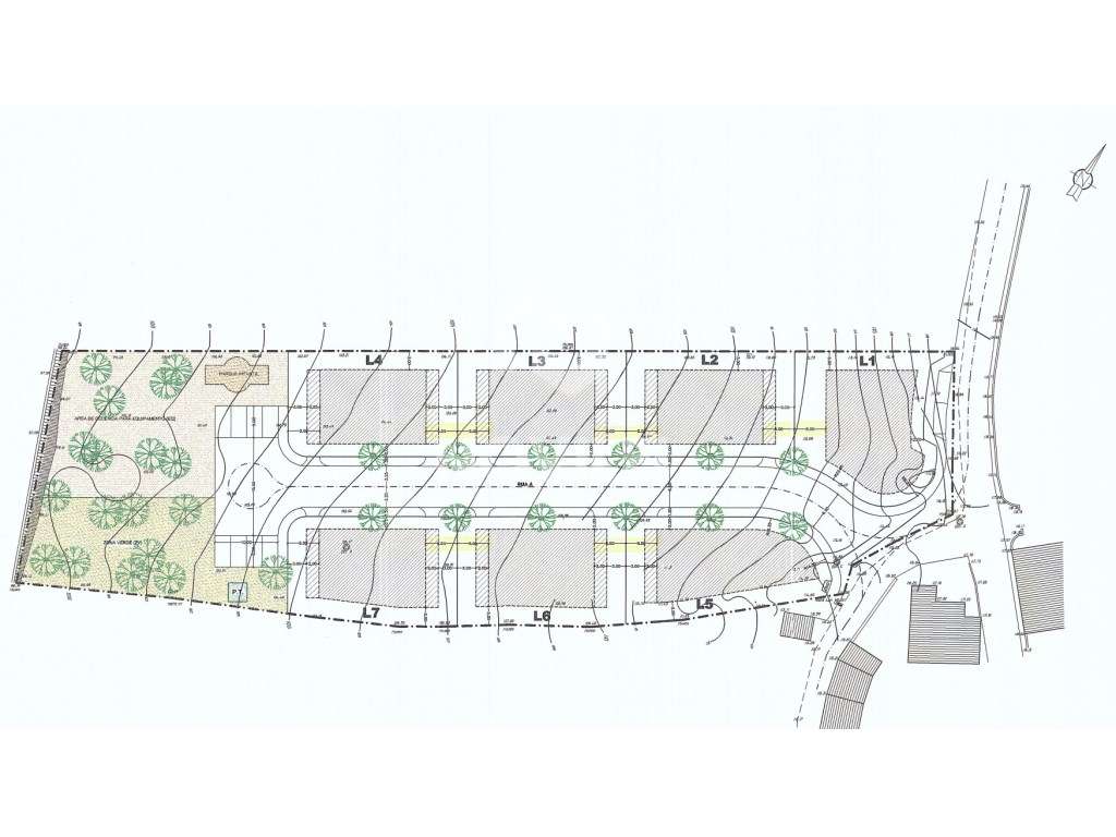 Terreno com 6000m2, loteado em 7 lotes para 16 fogos.