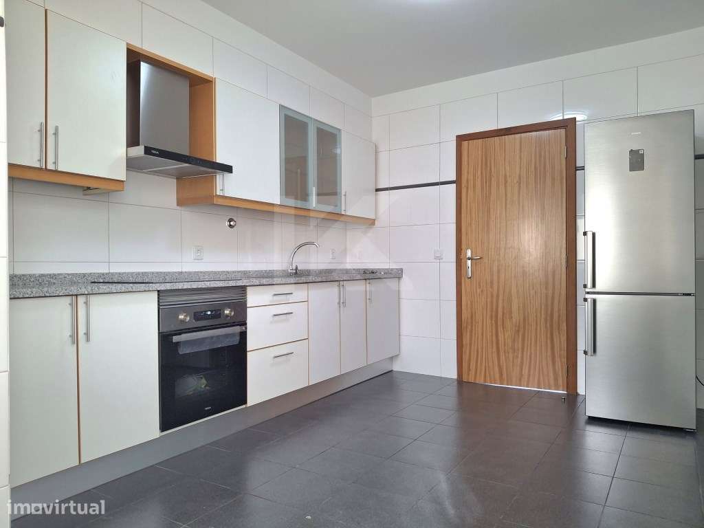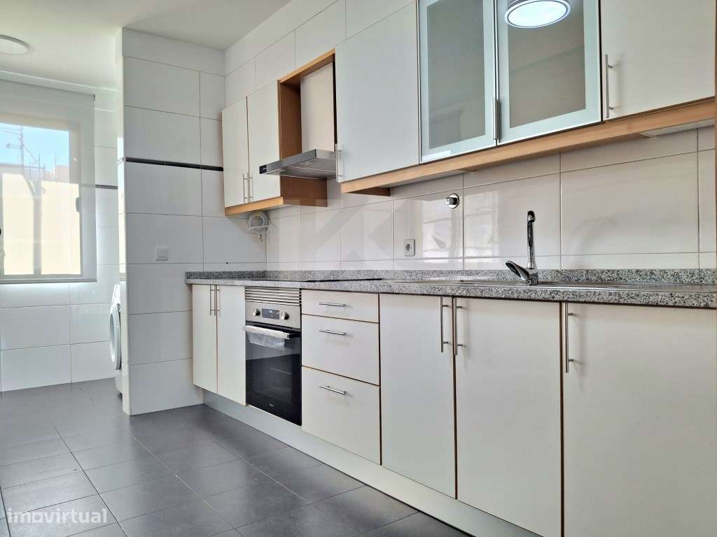 O apartamento é composto uma suite com WC privativa, dois quartos de dormir, uma casa de banho social, uma cozinha, uma lavandaria e uma s...