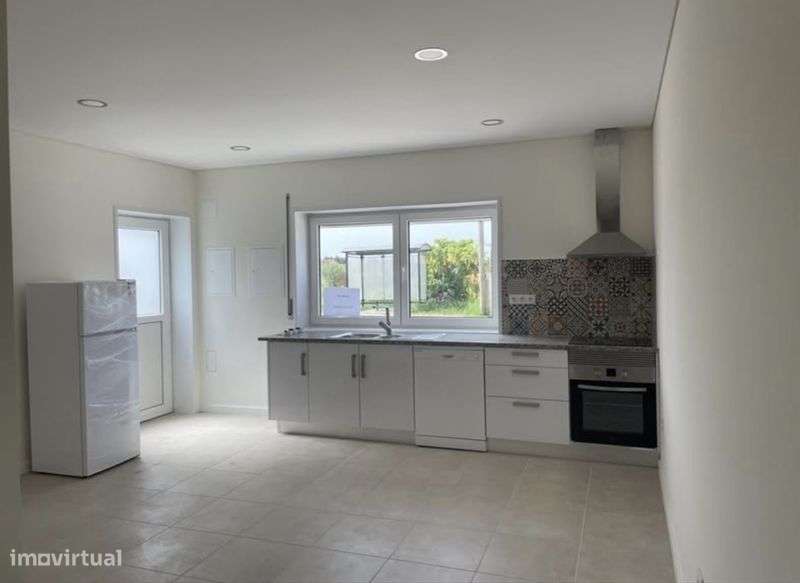 Cozinha equipada com móveis, forno, placa, frigorífico, termo acumulador.