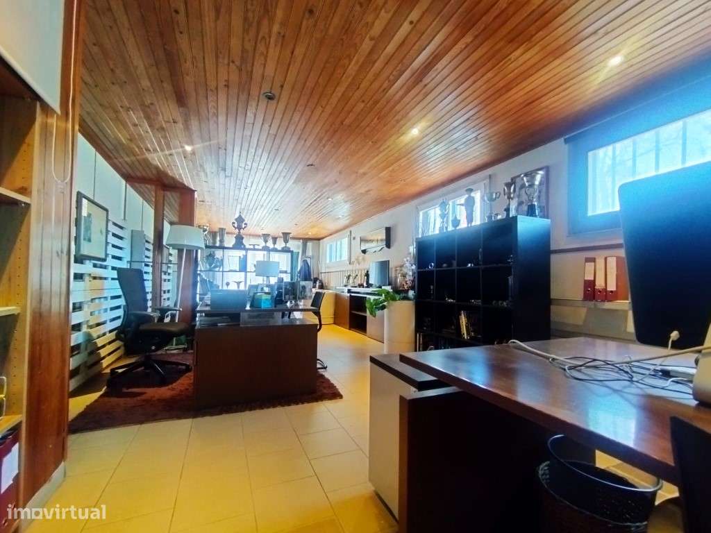 Imóvel convertido em espaço de escritório ou armazenamento, composto por uma área ampla em open space, 2 gabinetes e uma casa de banho completa.