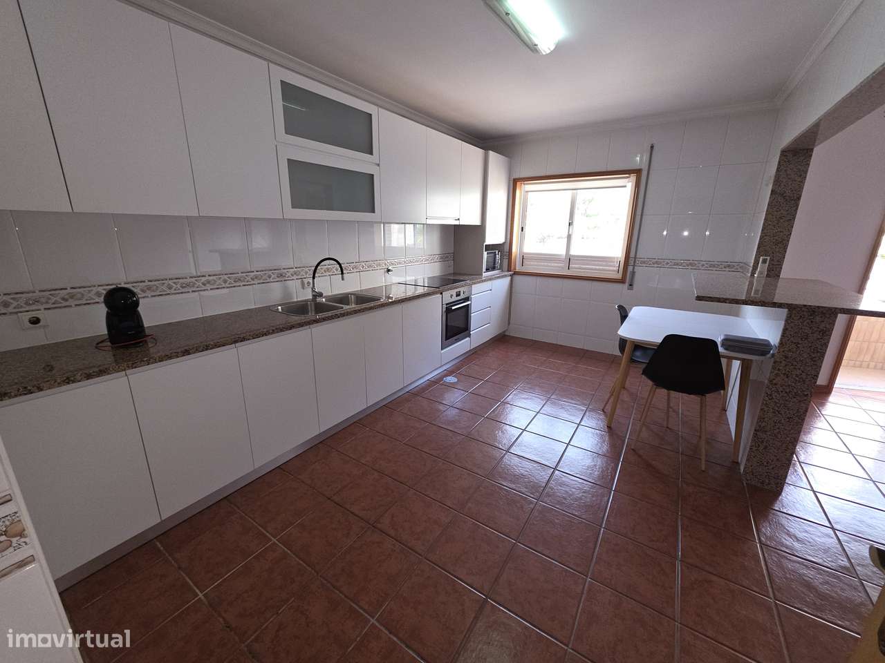 Cozinha equipada com placa, forno e exaustor;