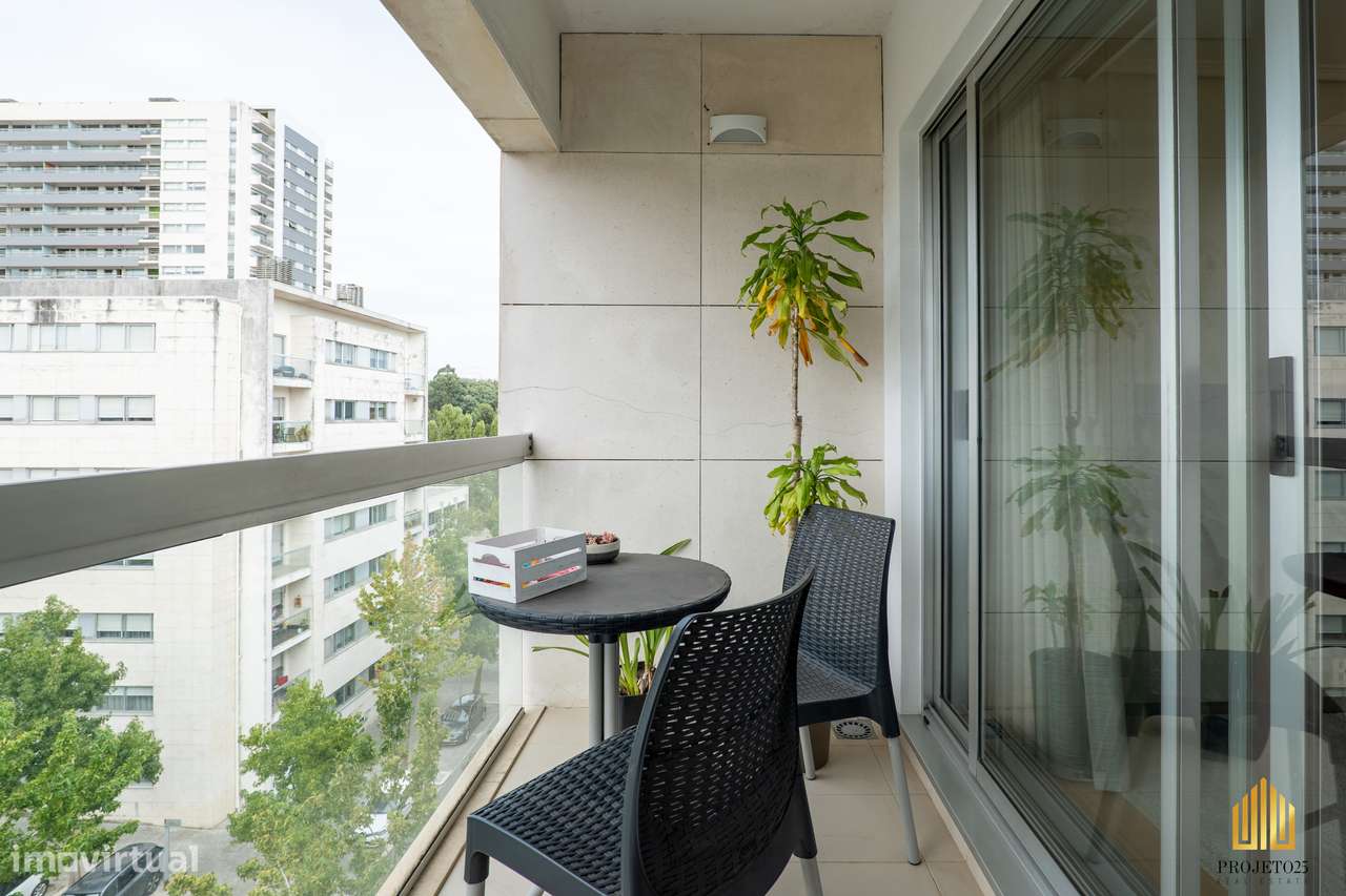 T2 Com Varanda Panorâmica em Urbanização Requintada, ao Aeroporto.