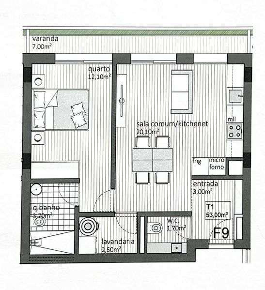 T1 em Brito Capelo com licença AL