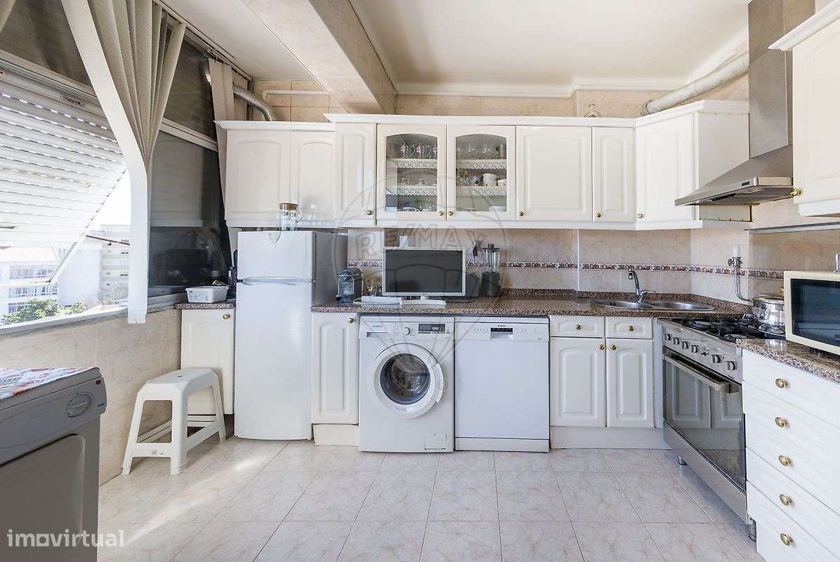 Imóvel com remodelação, cozinha equipada com caldeira, placa, forno, máquina de lavar roupa e máquina de lavar loiça! Varanda fechada e roupeiros. A uns passos do Rio Sul shopping, estação da Ferta...