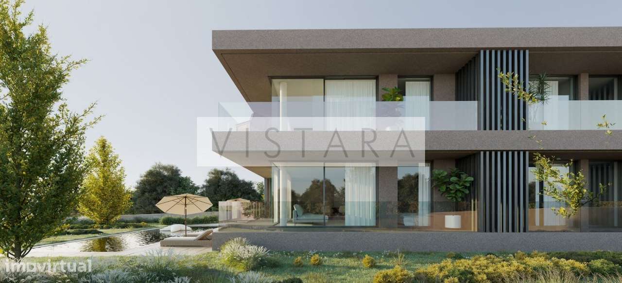 T2 moderno com piscina, jardim e acessibilidade
