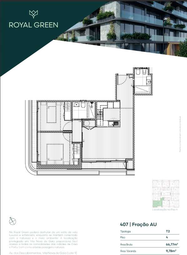 T2 Royal Green com 2 Varandas - Sul | Sudoeste
