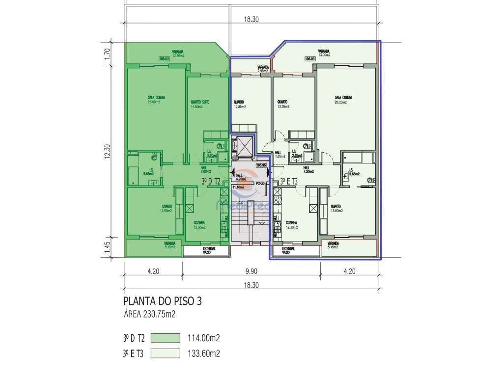 T3 NOVO – MOINHO DO GUIZO (Lote B19) 3° Andar