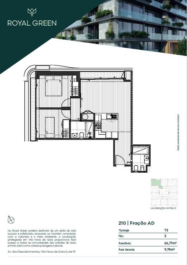 T2 NOVO com 2 Frentes, 2 Varandas (9,7m2), 2 frentes, lugar de garagem