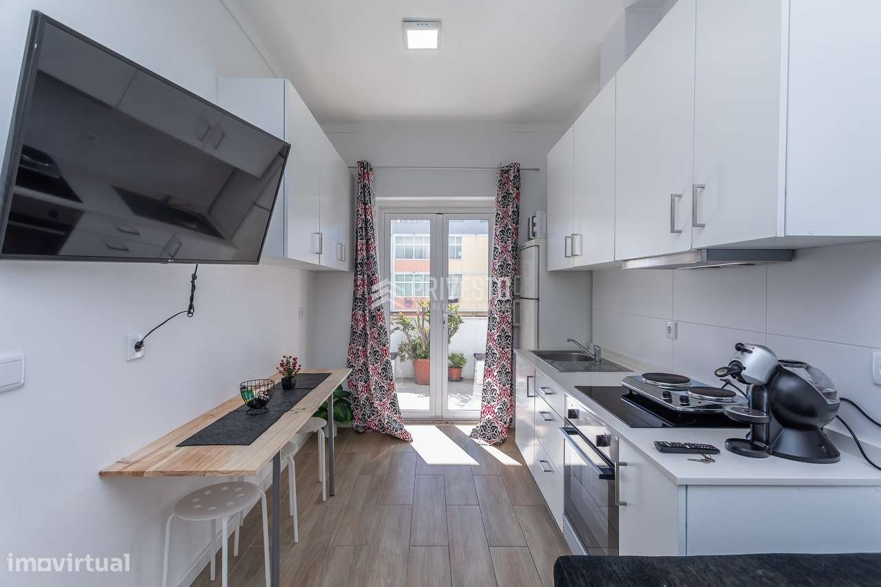 Apartamento T1 remodelado com varanda 20m2 em Agualva - Sintra