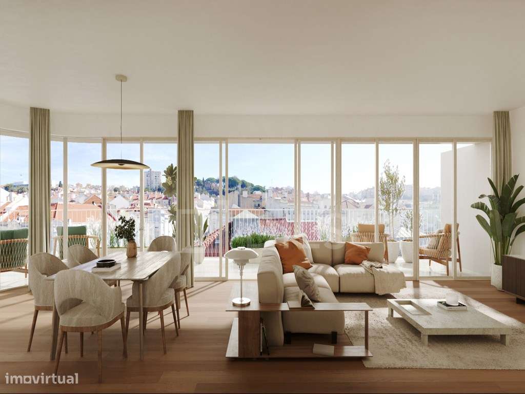 Penthouse duplex de luxo com varandas e vista sobre Lisboa