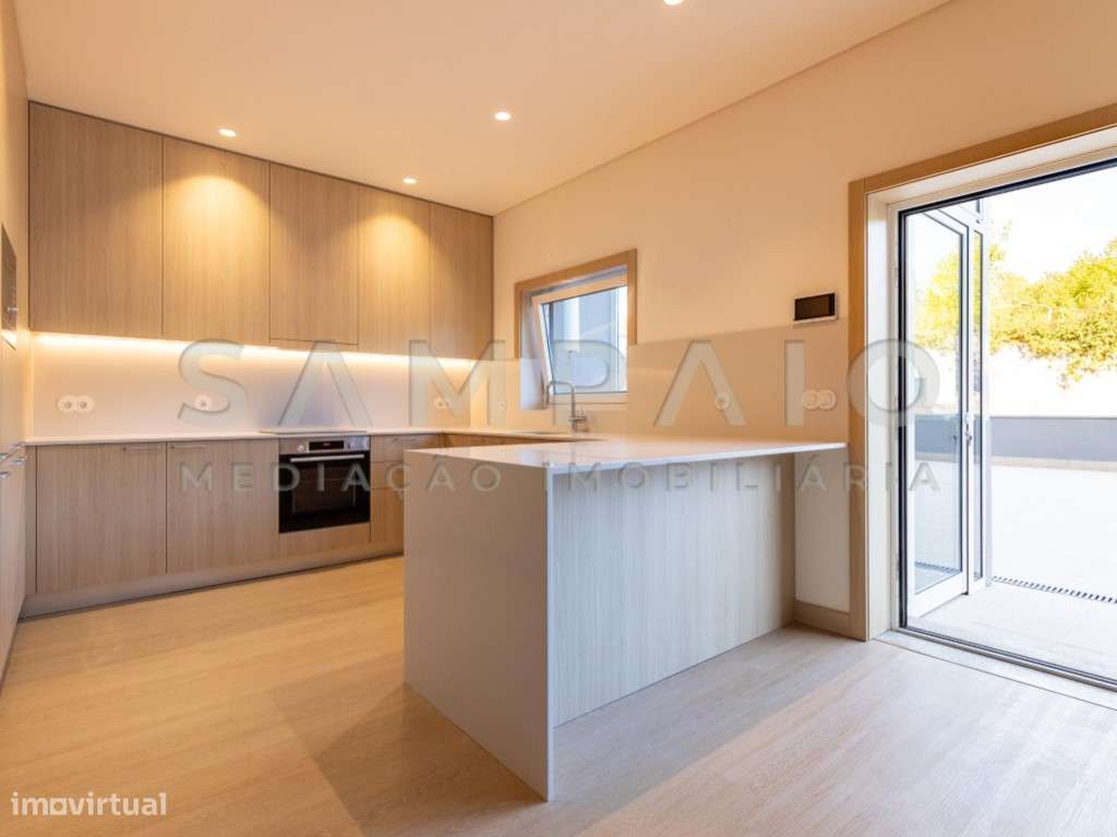 T3 NOVO c/ varanda e Terraço e box 2 lug. garagem – no Centro da Maia