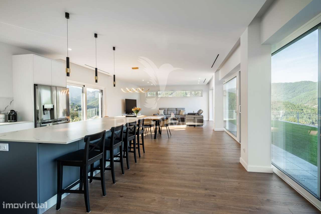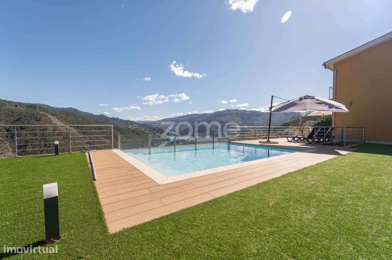 Moradia distinta situada na zona de Rio Caldo, inserida num terreno generoso e com vistas abertas sobre a serra e a albufeira, oferecendo privacidade, conforto e uma forte ligação à natureza.