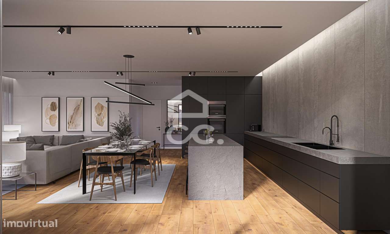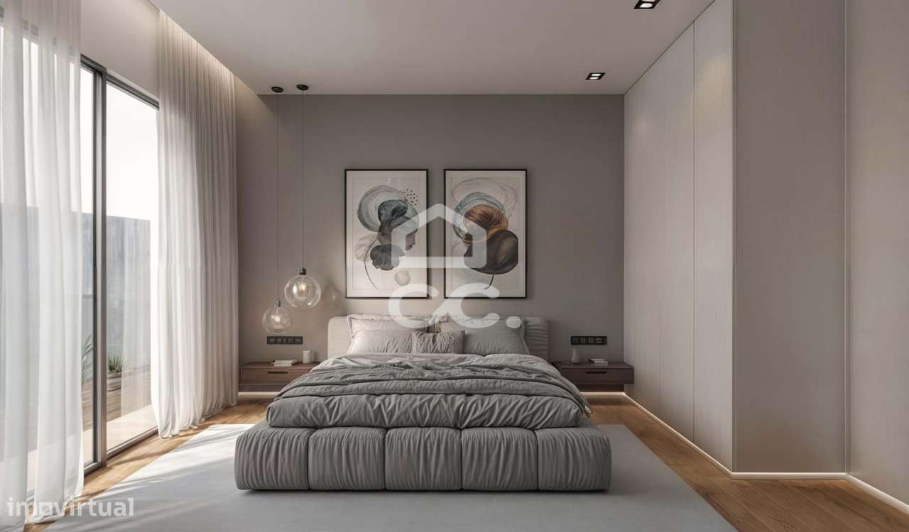 Moradia T3 geminada, nova, de estilo moderno para venda. Encontra-se