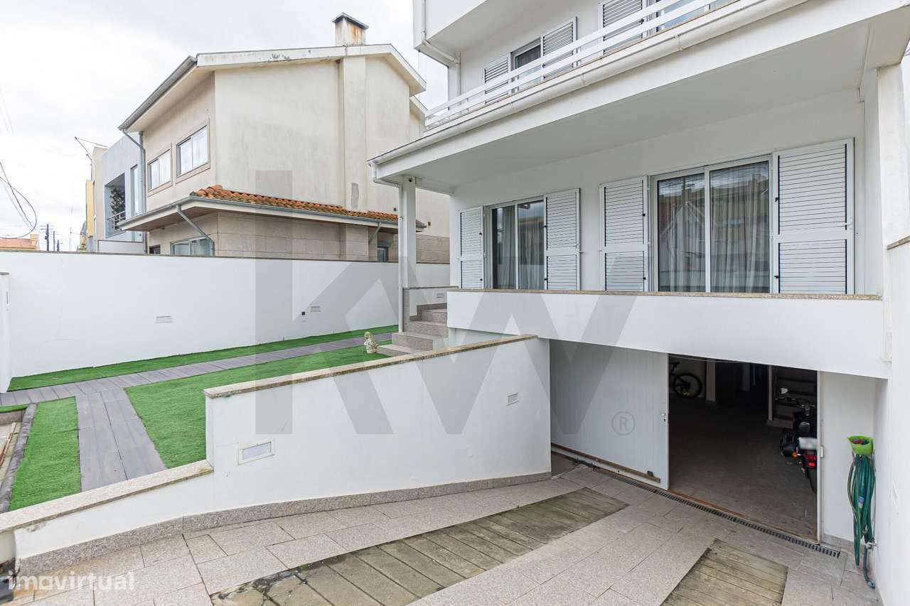Moradia moderna situada em Lavra com vista mar, piscina e jardim.