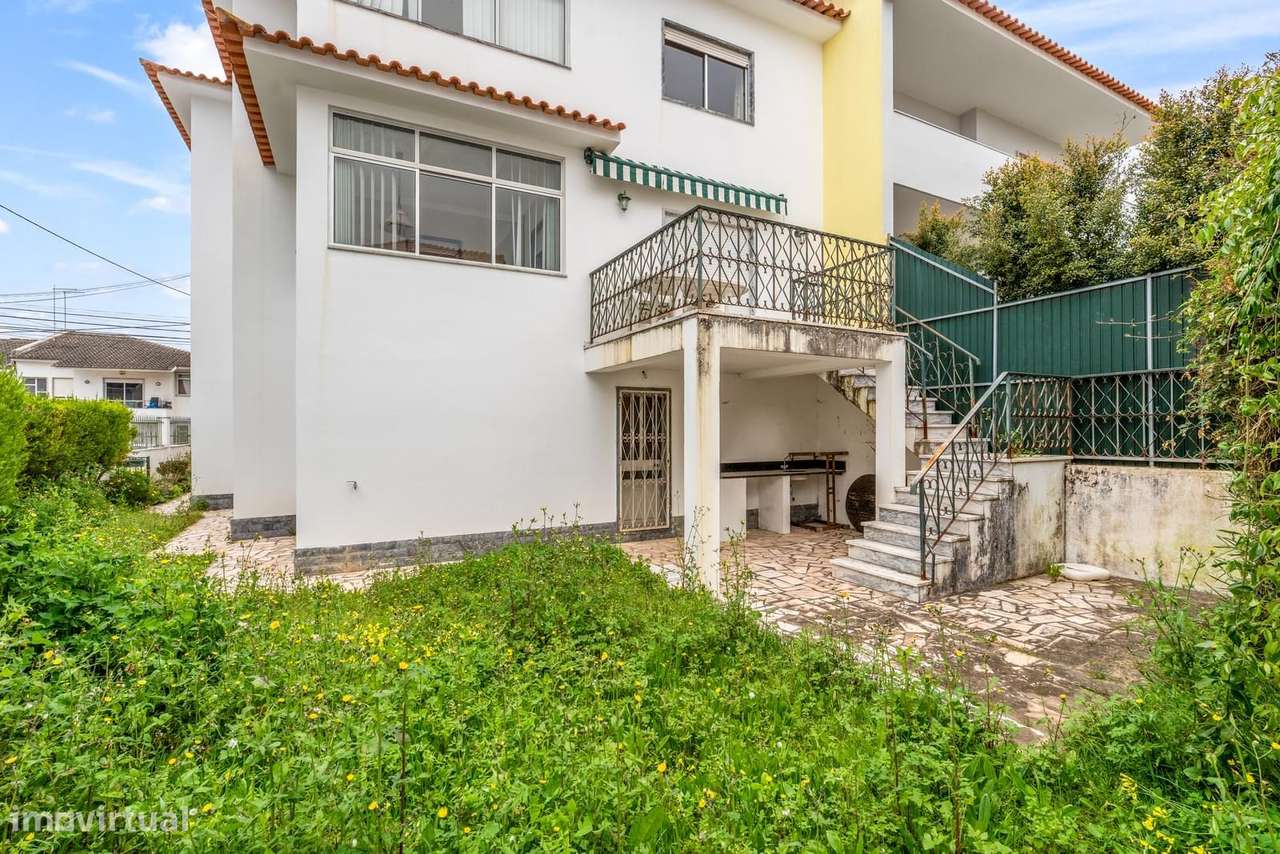 Moradia geminada com 5 quartos e áreas muito generosas, distribuída por 3 pisos, com cerca 250m2 de área e inserida num terreno de 291 m2