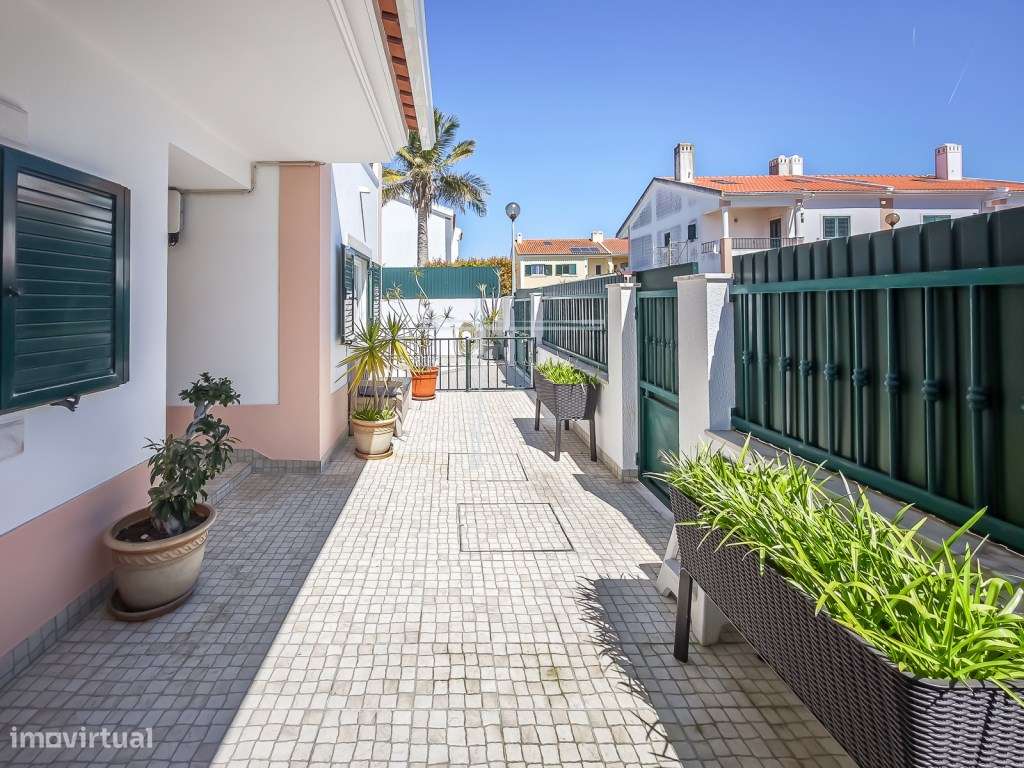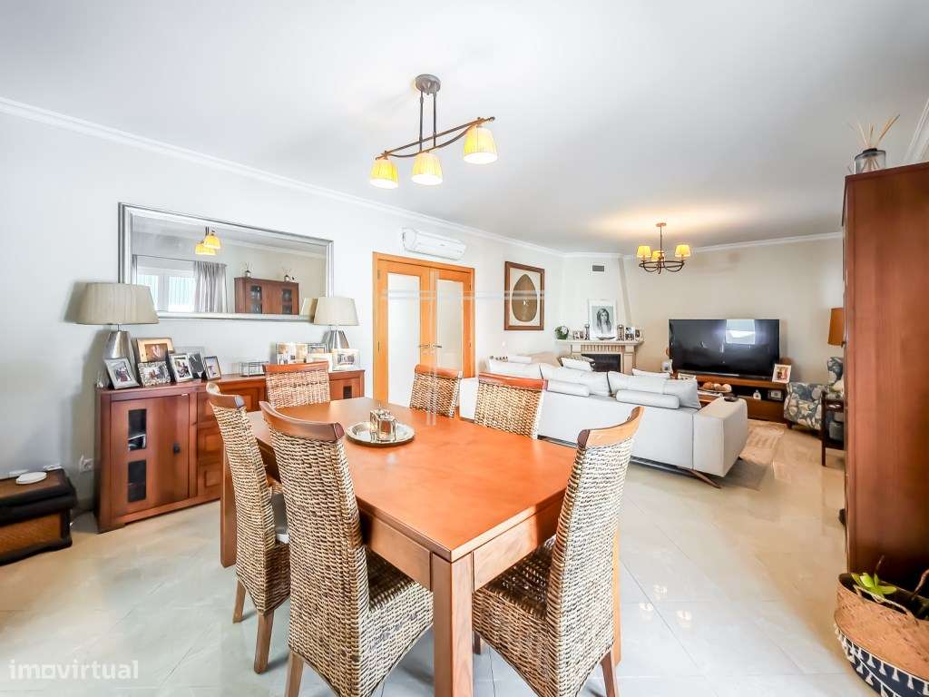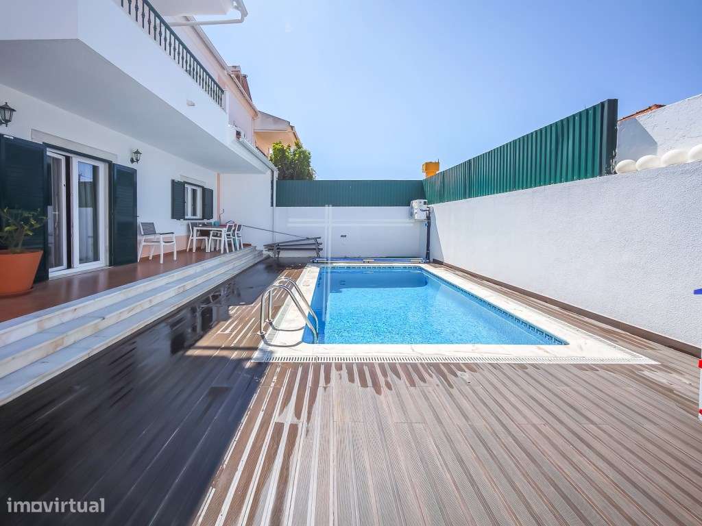 Moradia geminada T4+1, arquitetura tradicional com garagem e piscin...