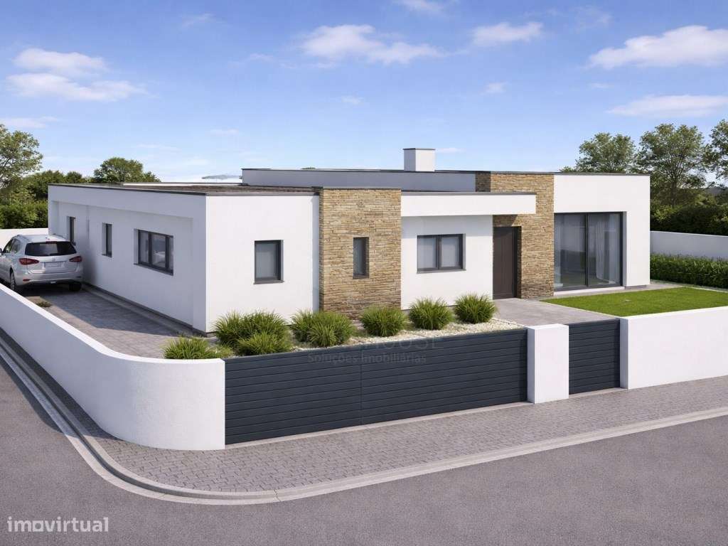 Moradia geminada T4, arquitetura contemporânea com garagem e piscin...