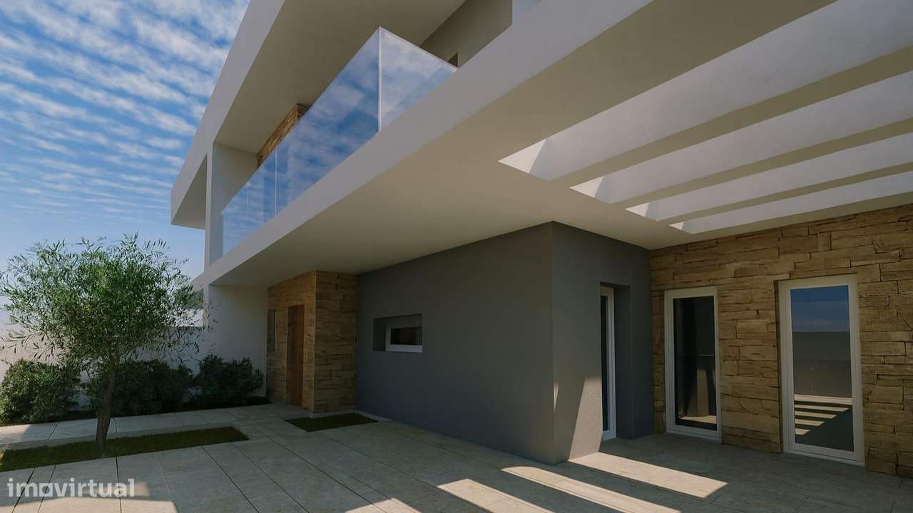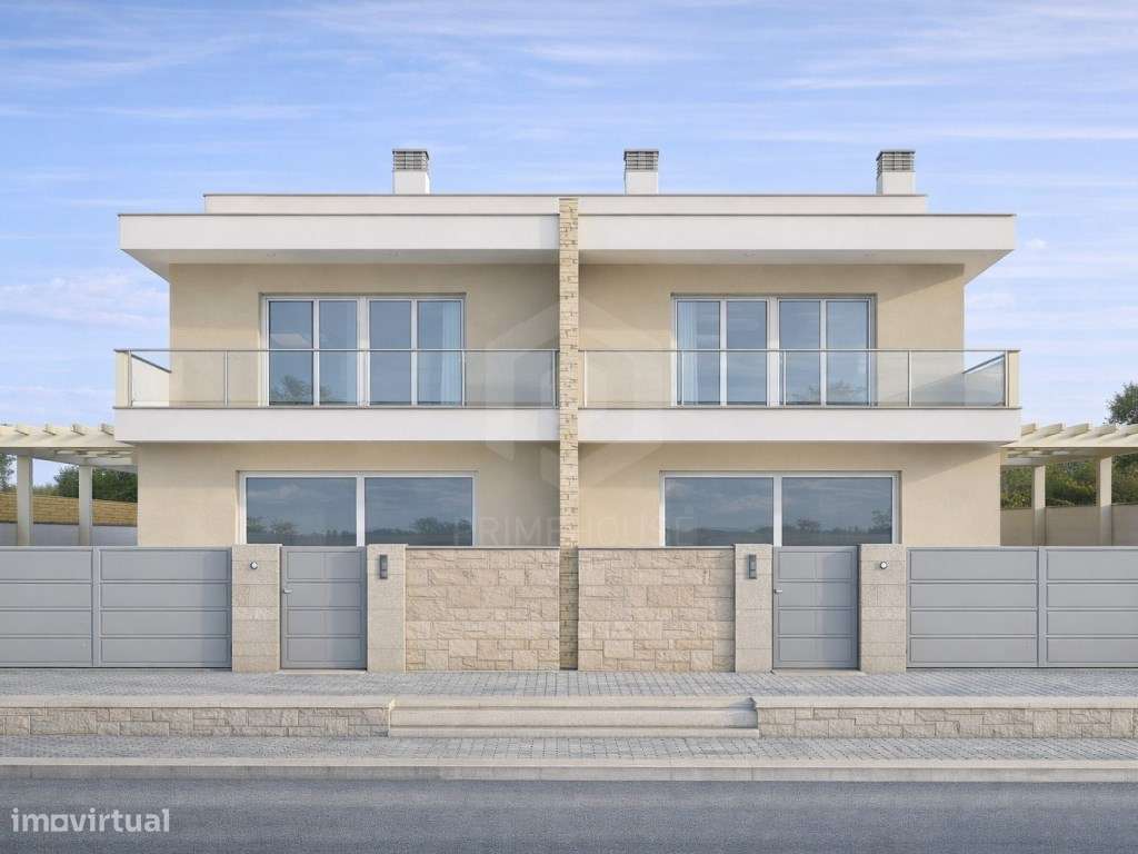 Moradia geminada T3, arquitetura contemporânea com pérgula - Fernão...