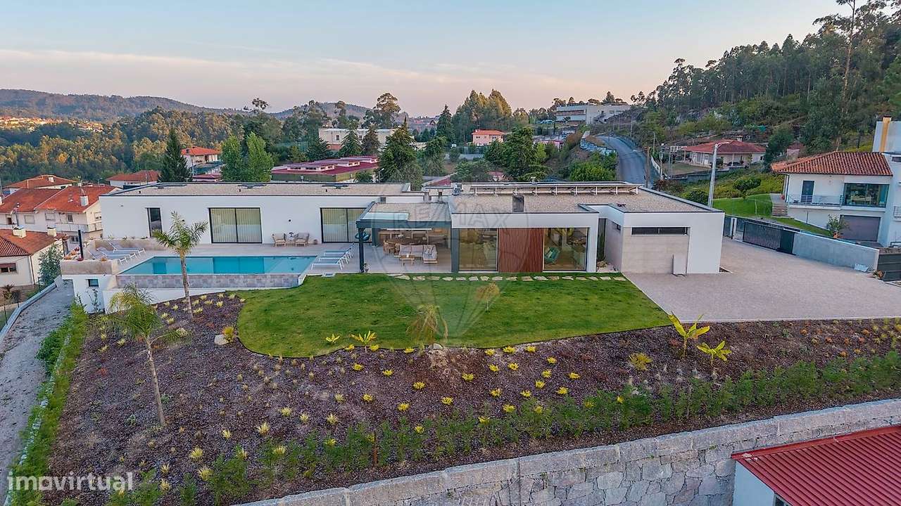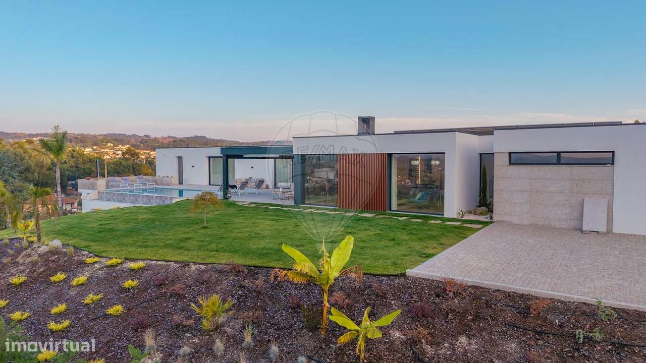 Moradia Térrea de Luxo com Piscina Inserida numa zona residencial tranquila, esta imponente moradia térrea destaca-se pelo seu design contemporâneo, espaços generosos e uma envolvência natural de cort...