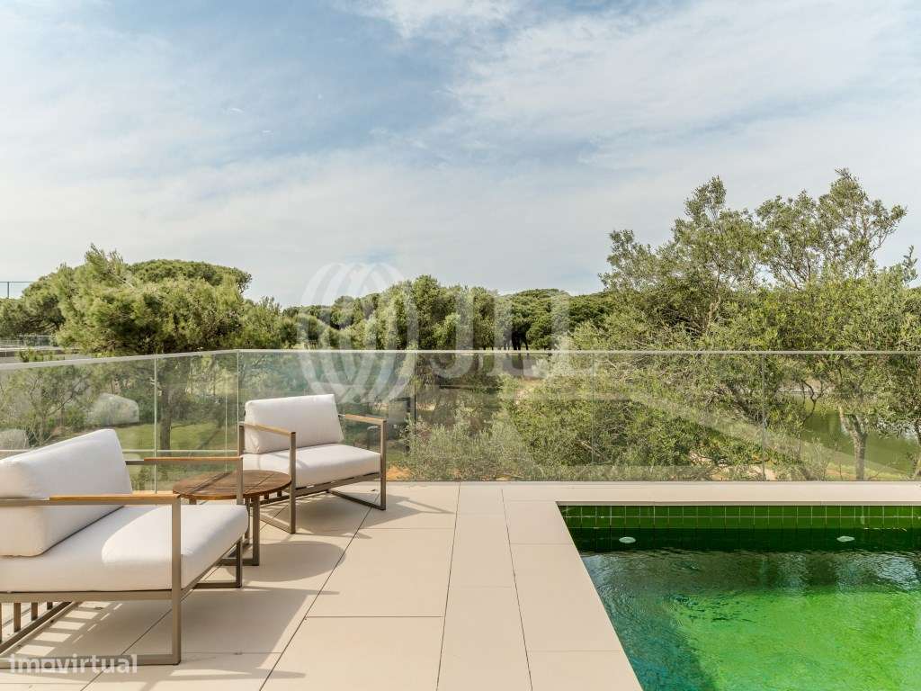 Moradia T3 com 293 m2 de área bruta de construção, estacionamento, jardim e piscina, inserida no resort Marinha Prime, na Quinta da Marinha, em Cascais.