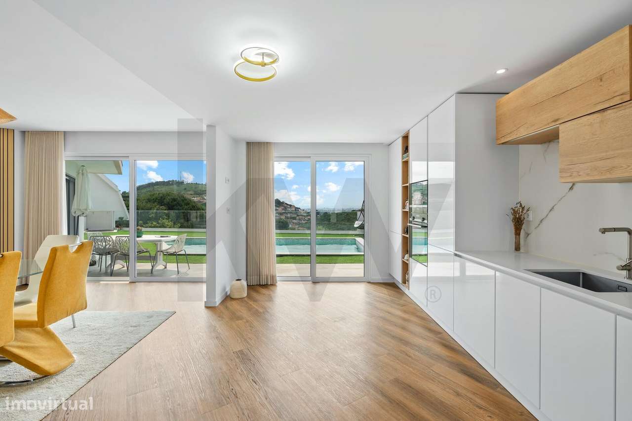 Moradia T4 com piscina, suite, espaço multiusos e vista aberta sobre o