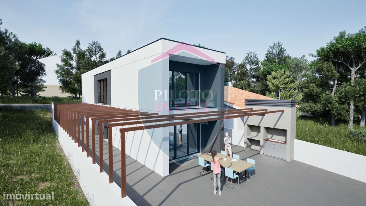 No 1º piso contamos com sala e cozinha em open-space com tetos falsos e focos embutidos, casa de banho completa com base de duche ...