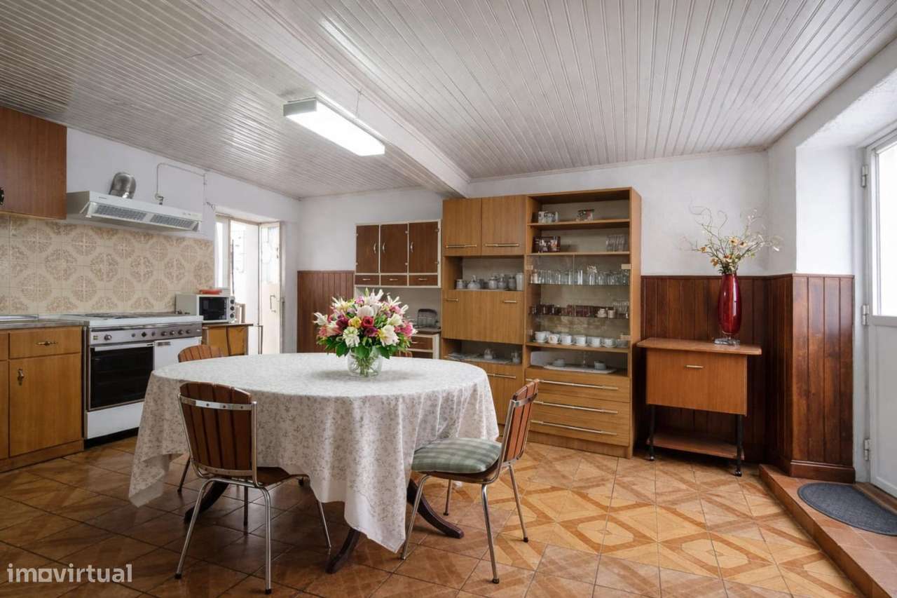 Dispõe ainda de um logradouro com 120 m2 com algumas arvores de fruto.
