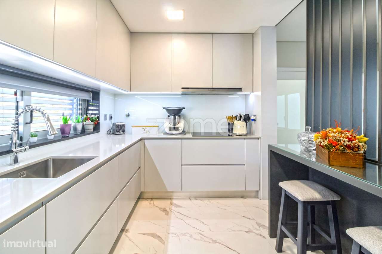 Identificação do imóvel: ZMPT556634 A Moradia organiza-se da seguinte forma: CAVE: - Garagem para 3 carros - Escritório / Ginásio - Lavandaria RC - Hall entrada - WC de serviço - Cozinha equipada c...