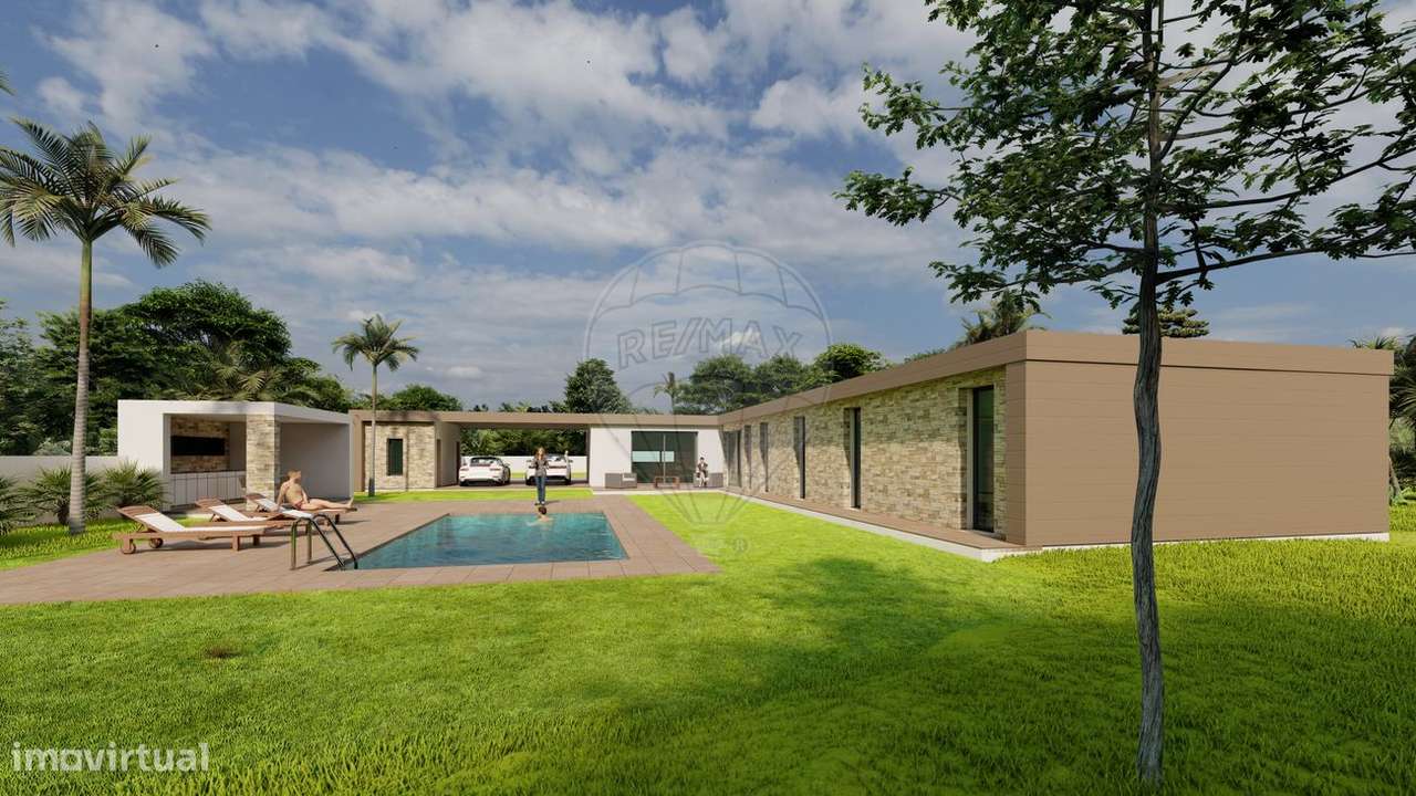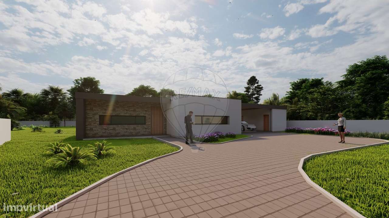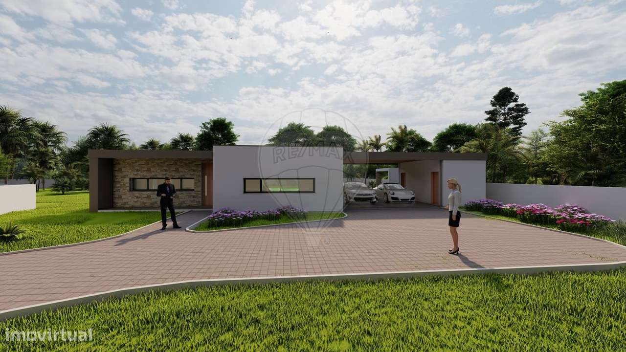 Moradia T4, térrea, com 305,88 m2 de área bruta de construção, inserida em lote de terreno com 1527 m2, localizada na Carreira, Leiria.