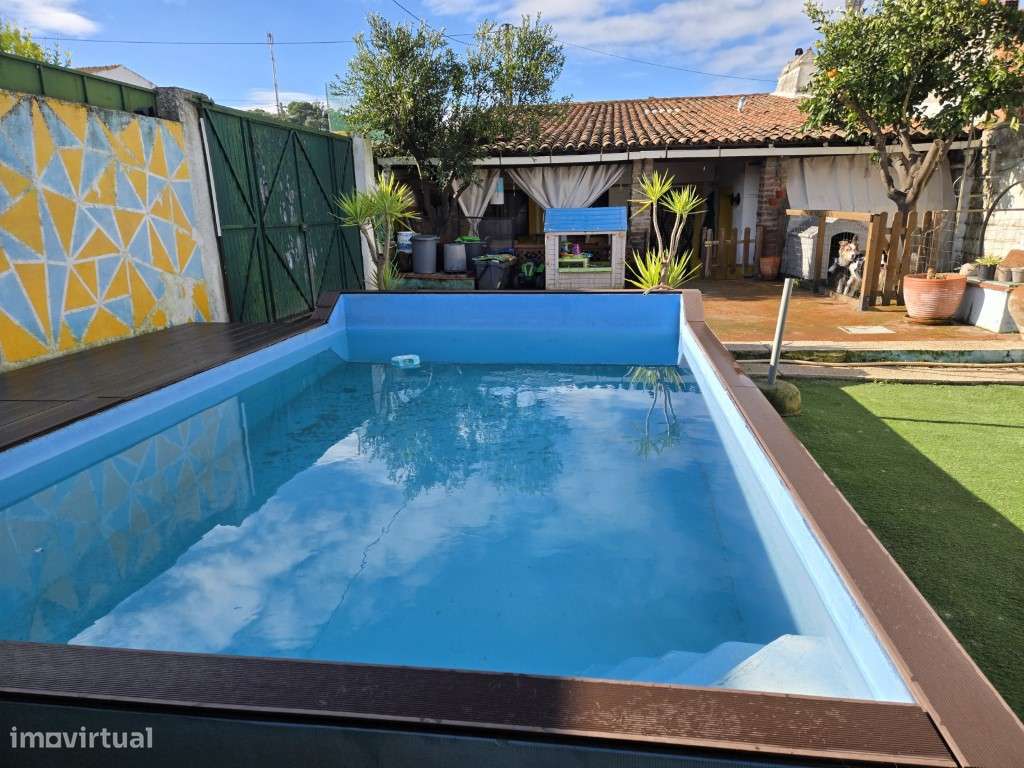 Moradia composta por quatro quartos, uma sala, cozinha com chaminé, uma casa de banho, garagem com bastante espaço, quintal, anexo e ainda sótão.