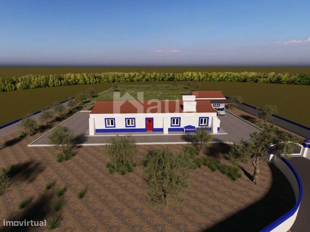Moradia T2 térrea com 11.295 m2 de terreno — Pegões | Para reabilitaçã