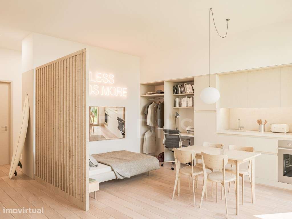 Descubra este moderno T0 com 68 m² interiores e um terraço privativo de 22 m², inserido em prédio totalmente renovado no coração do Bairro de Arroios, em Lisboa.