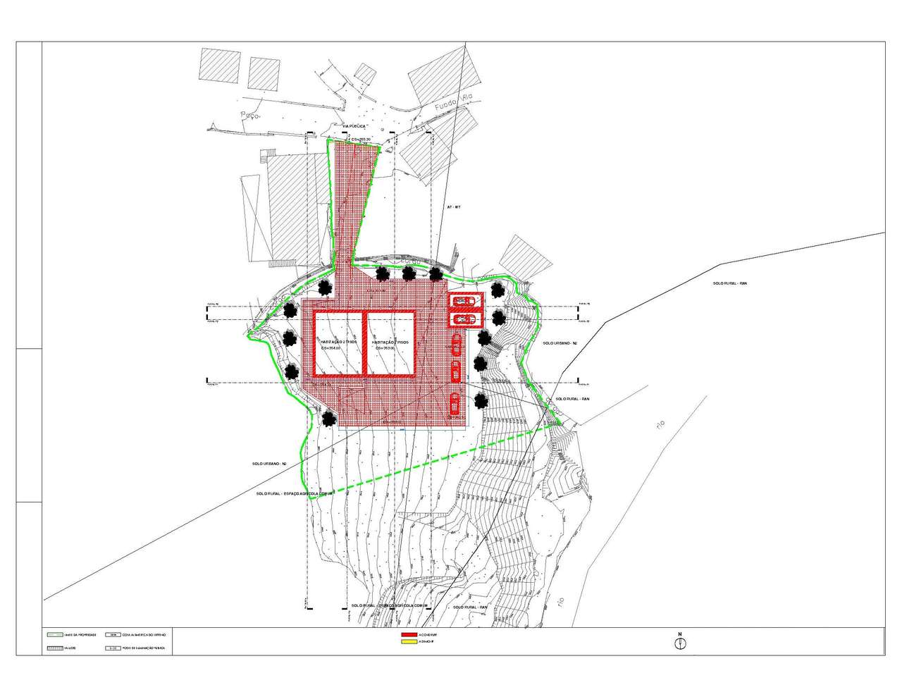 Terreno com 3672 m2, com parecer favorável relativo à Informação Prévia da viabilidade de construção de edifício com a área de 521,40 m2 (PIP - Aprovado).O terreno limita com um rio, ao longo de cerca...