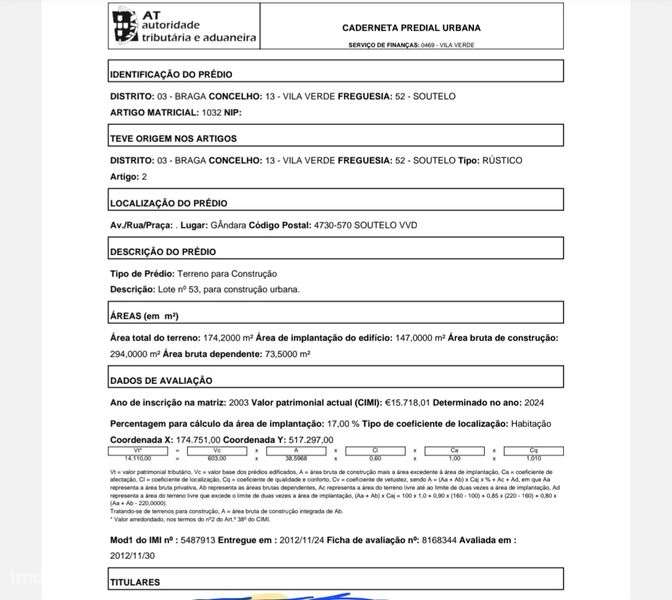 Terreno de Construção para Venda em LORDELO - GMR