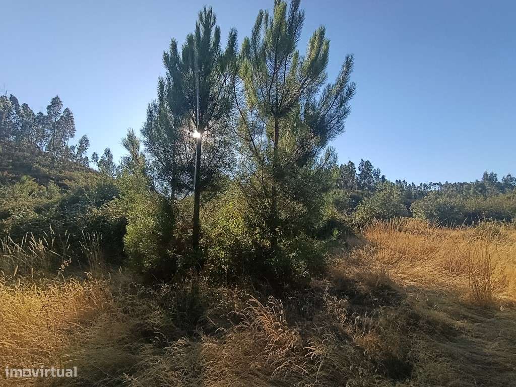 Terreno rústico com 2560m2 com alguns pinheiros e oliveiras. O terreno tem ainda 2 poços.